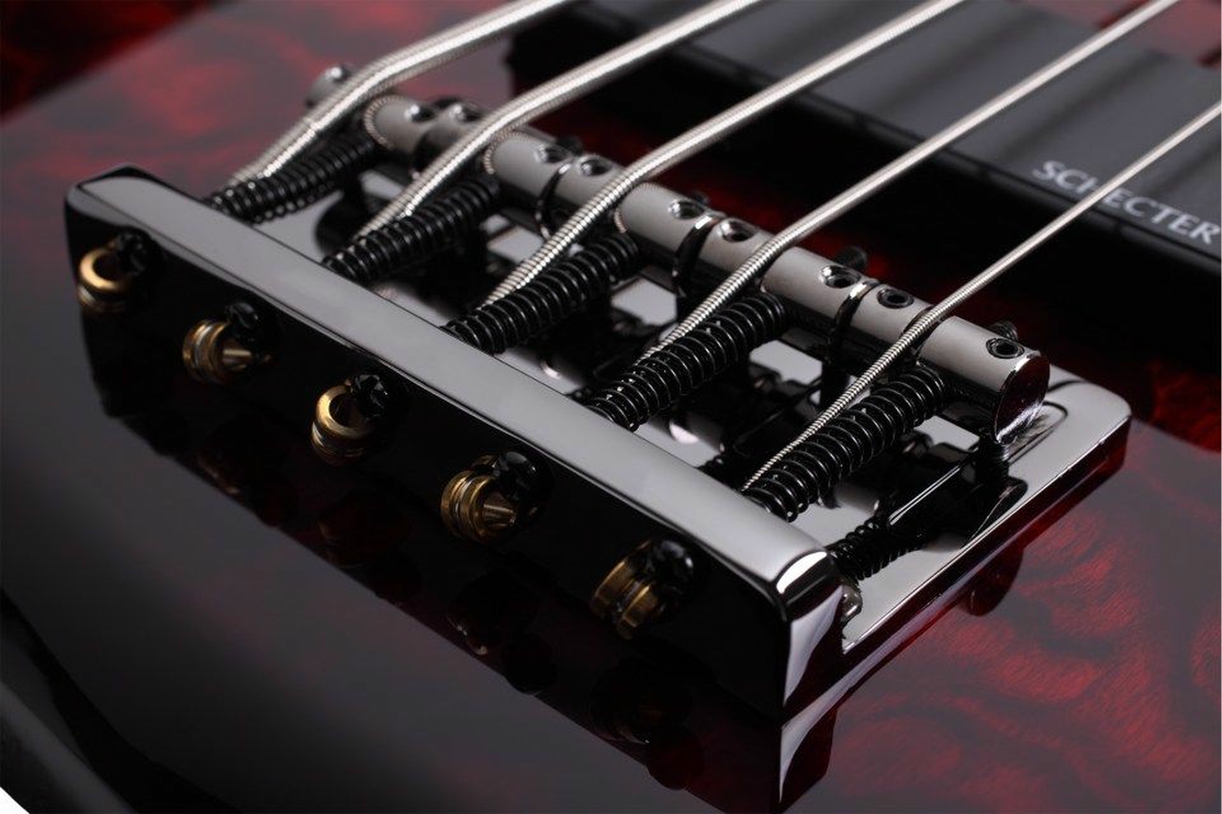 Электроника Schecter Diamond Bass в сочетании с бриджем Diamond точно передает нюансы атаки и динамики, предлагая широкий спектр тембров. Фурнитура Black Chrome завершает образ, добавляя современный характер. Stiletto Extreme-5 в See-Thru Black — выбор для тех, кто ценит звук, эргономику и визуальное впечатление.