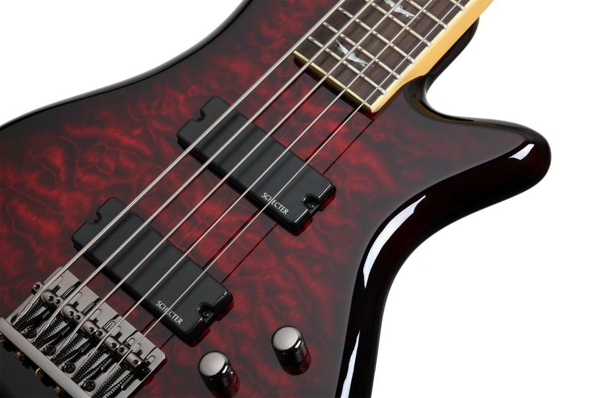 SCHECTER Stiletto Extreme-5 — пятиструнная электрическая бас-гитара с выразительным внешним видом и мощным звуком, созданная для сцены, студии и профессионального обучения. Цвет гитары подчеркивает природный рисунок фигурной кленовой крышки, создавая стильный и современный образ, сочетающий эстетику и функциональность.