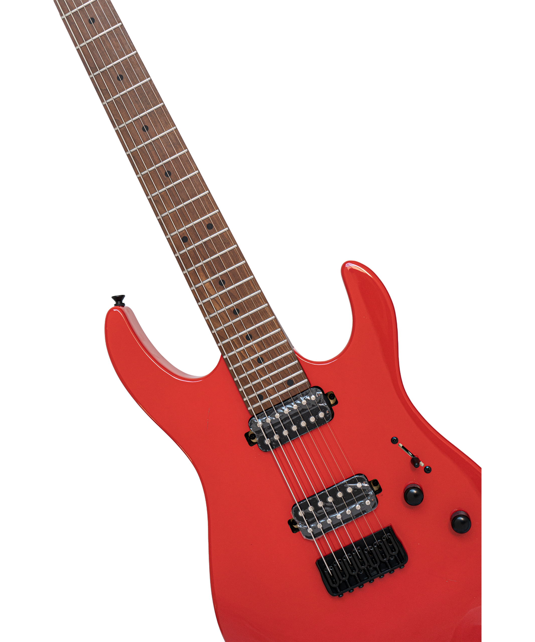 Электрическая гитара SEG STR7 RD — это идеальный инструмент для музыкантов, ценящих качество и стиль. С шестью струнами и креплением грифа на болтах, она обеспечивает отличную стабильность и удобство в игре. Корпус из тополя и карамелизованный клен грифа создают гармоничное звучание, а мензура 25,5″ (648 мм) и 22 скругленных лада делают игру комфортной. Радиус накладки грифа в 16″ (406 мм) и «С»-образный профиль обеспечивают отличную эргономику. С двумя хамбакерами Alnico Little Giant SSF-1 вы сможете добиться насыщенного звука, а регуляторы громкости и тембра позволят настроить тональность под любые музыкальные стили. Hardtail бридж гарантирует надежную настройку, а черная фурнитура на фоне яркого красного корпуса придаёт инструменту современный вид. Эта праворукая гитара станет отличным выбором как для начинающих, так и для опытных музыкантов