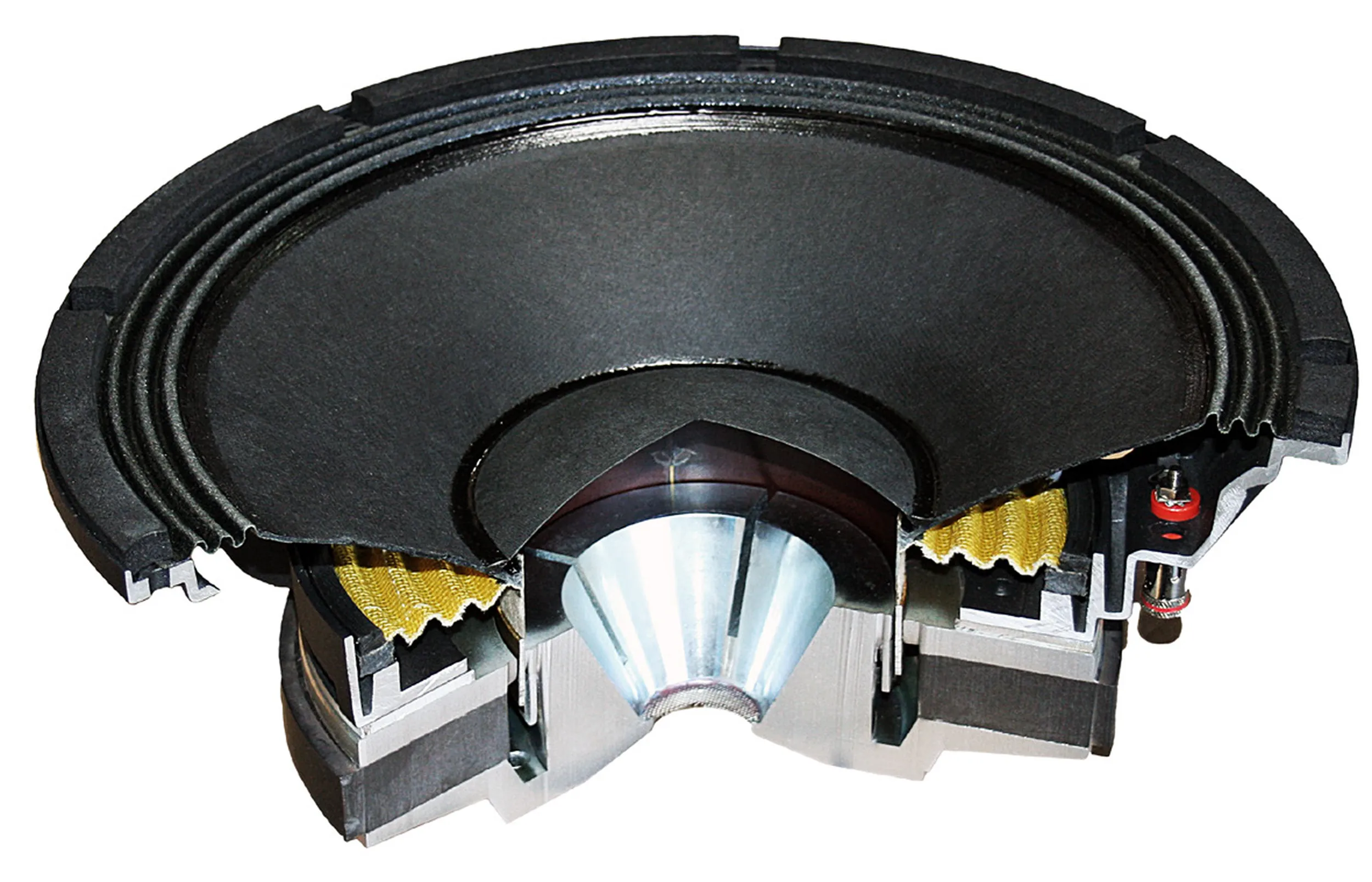 Динамики: НЧ: 1 x 15″, 4-x дюймовая звуковая катушка ВЧ: 1 x 4″, 100 мм. звуковые катушки, беррилиевые мембраны