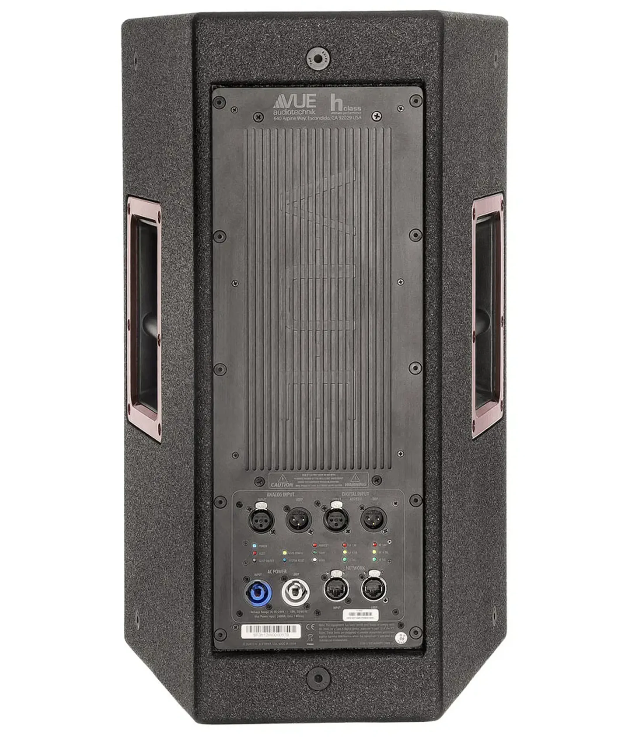 Схема модуля класса D обеспечивает большую выходную мощность и запас по мощности в чрезвычайно компактном форм-факторе, выделяя при этом значительно меньше тепла, чем более традиционные конструкции. Усилитель установлен на большом алюминиевом радиаторе с выточенным логотипом «VUE». Сочетание усиления класса D и достаточного рассеивания тепла устраняет необходимость в шумных охлаждающих вентиляторах.